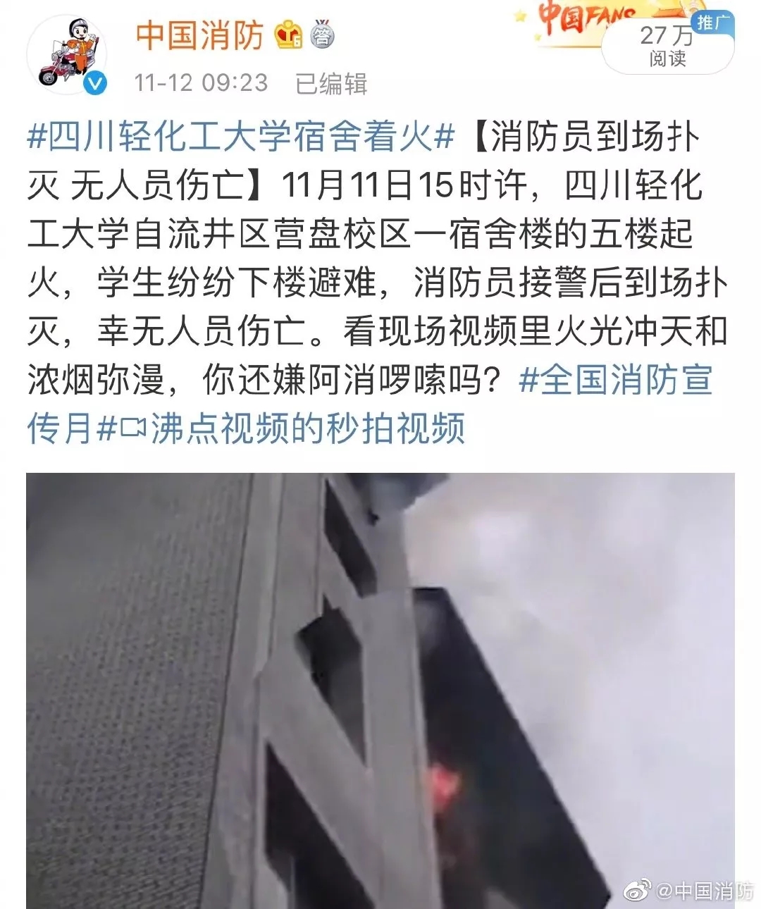 最新:12月18日19时52分,杭州消防接到报警,浙江工业大学屏峰校区东苑5号楼宿舍楼4楼起火,消防员到场将火扑灭,无人员伤亡。现场视频显示火势燃烧猛烈!