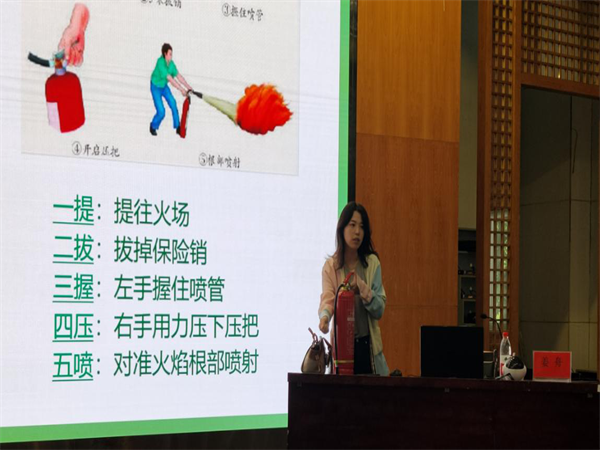 讲座开始,姜舟分别从防火、防盗、防诈骗、交通安全、人身安全、校园贷这六个方面展开,结合了大量的跟大家学习、生活安全息息相关的现实案例给同学们做了详细讲解,对于杜绝校园火灾隐患做了特别分析,并提出有效的解决方案。此外,为了让学生更加直观的了解灭火器,姜舟还在现场给同学们介绍和演示了灭火器的正确使用方法。