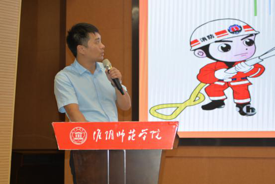 景鹏处长从防火灾,防盗窃,防诈骗,交通安全,人身安全,校园贷等6个方面展开讲解。首先,景鹏处长通过视频《消防蜀黎开学第一课》,结合我校宿舍存在的安全隐患问题图片,向新生们讲述了在宿舍内使用大功率违章电器存在和引发的安全隐患,告诫同学们要严格遵守学校规章制度,杜绝在宿舍区使用违章电器,私拉乱接电器电线,要防患于未然,避免火灾事故的发生。