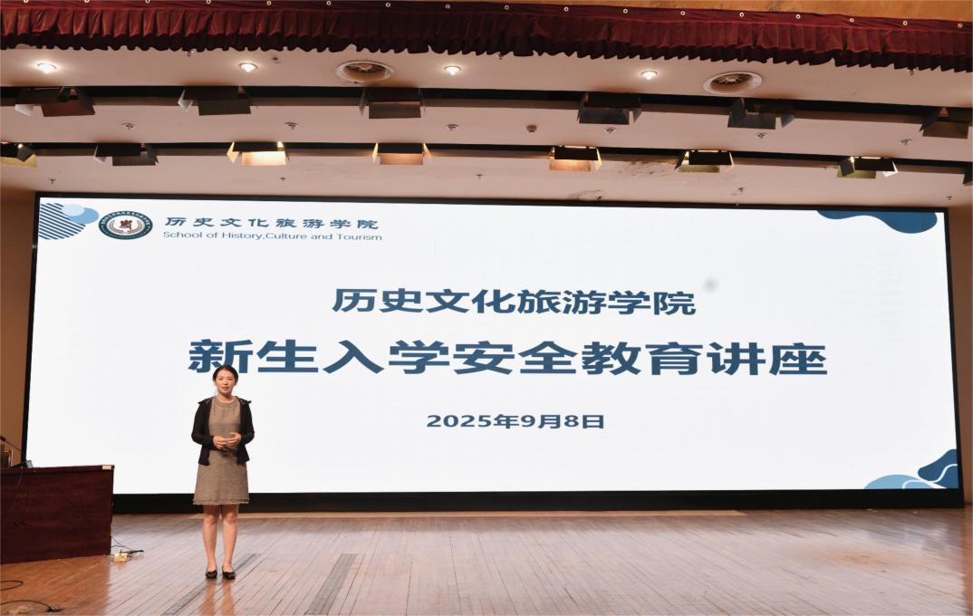 为帮助新生强化安全防范意识、提升自我?;つ芰?,9月8日下午,历史文化旅游学院于学术报告厅举办新生入学安全教育讲座。本次讲座特邀校党委保卫部姜舟老师主讲,全体2025级新生参加。