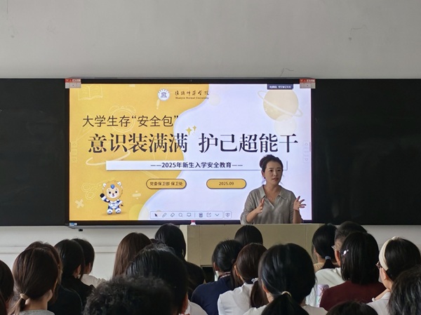 9月8日,保卫处姜舟受邀于综南109为新生开展安全防范教育讲座。她以近年高?;鹪职咐腥耄饰龀梢蚪萄?,提醒新生警惕宿舍违规用电;并结合自身经历讲解六种主要电诈形式,强调“遇疑核实、及时求助、切勿转账”;最后,她希望学生筑牢“安全第一”的理念,提升避险能力,为新学期安全保驾护航。