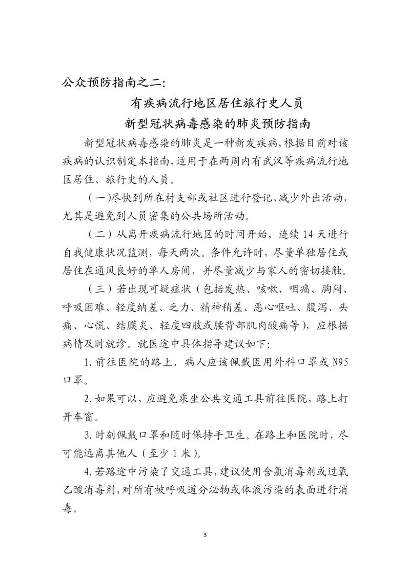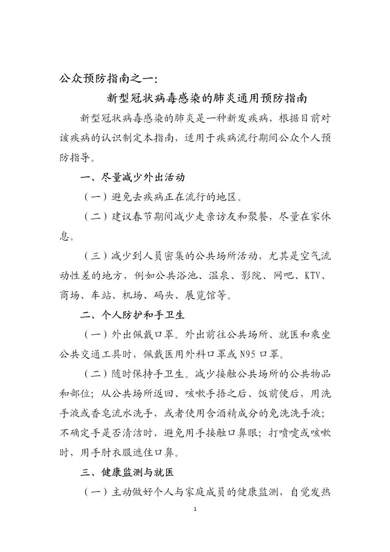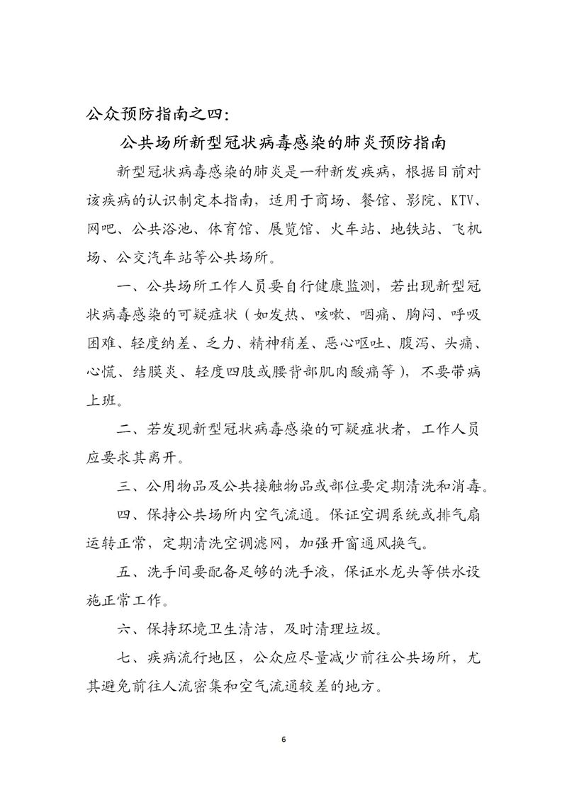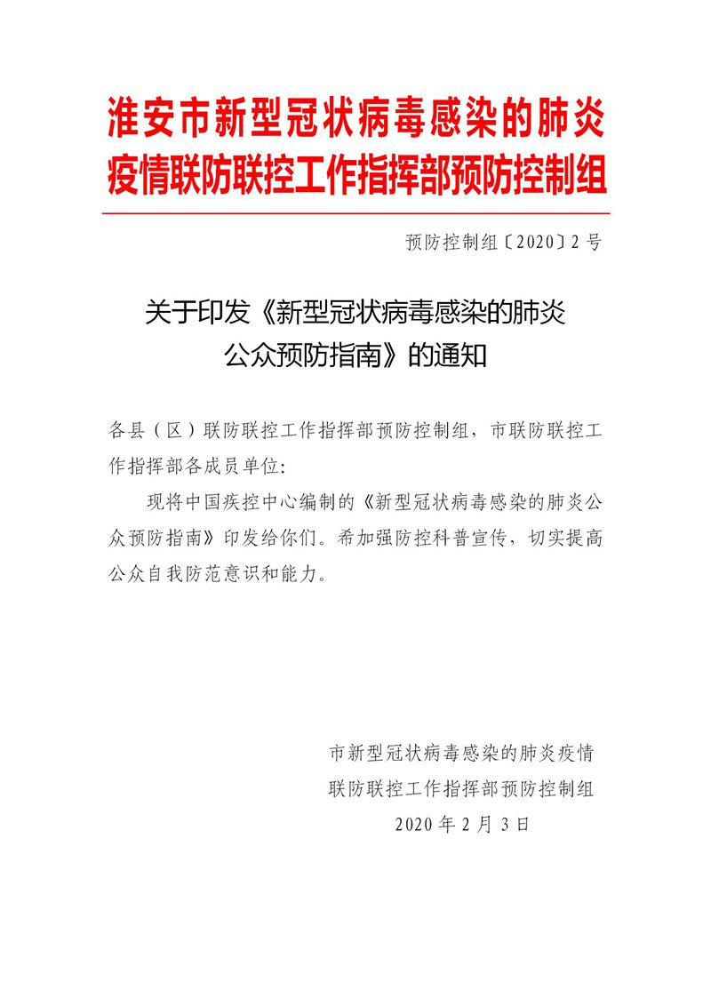 关于转发新型冠状病毒感染的肺炎公众预防指南的通知