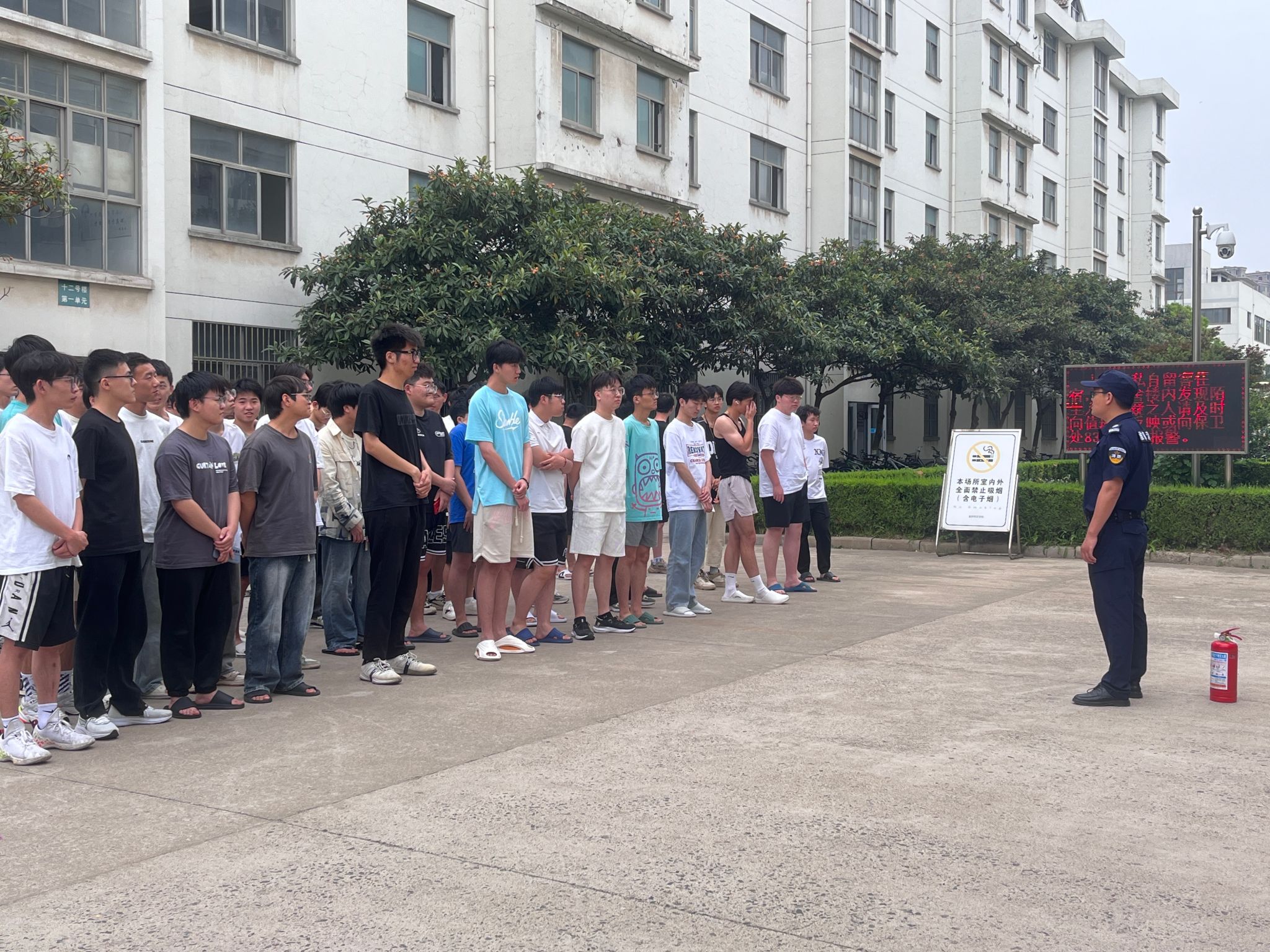 6月5日,保卫处联合物理与电子电气工程学院在学生公寓13号楼开展了第六期学生公寓疏散逃生演练。