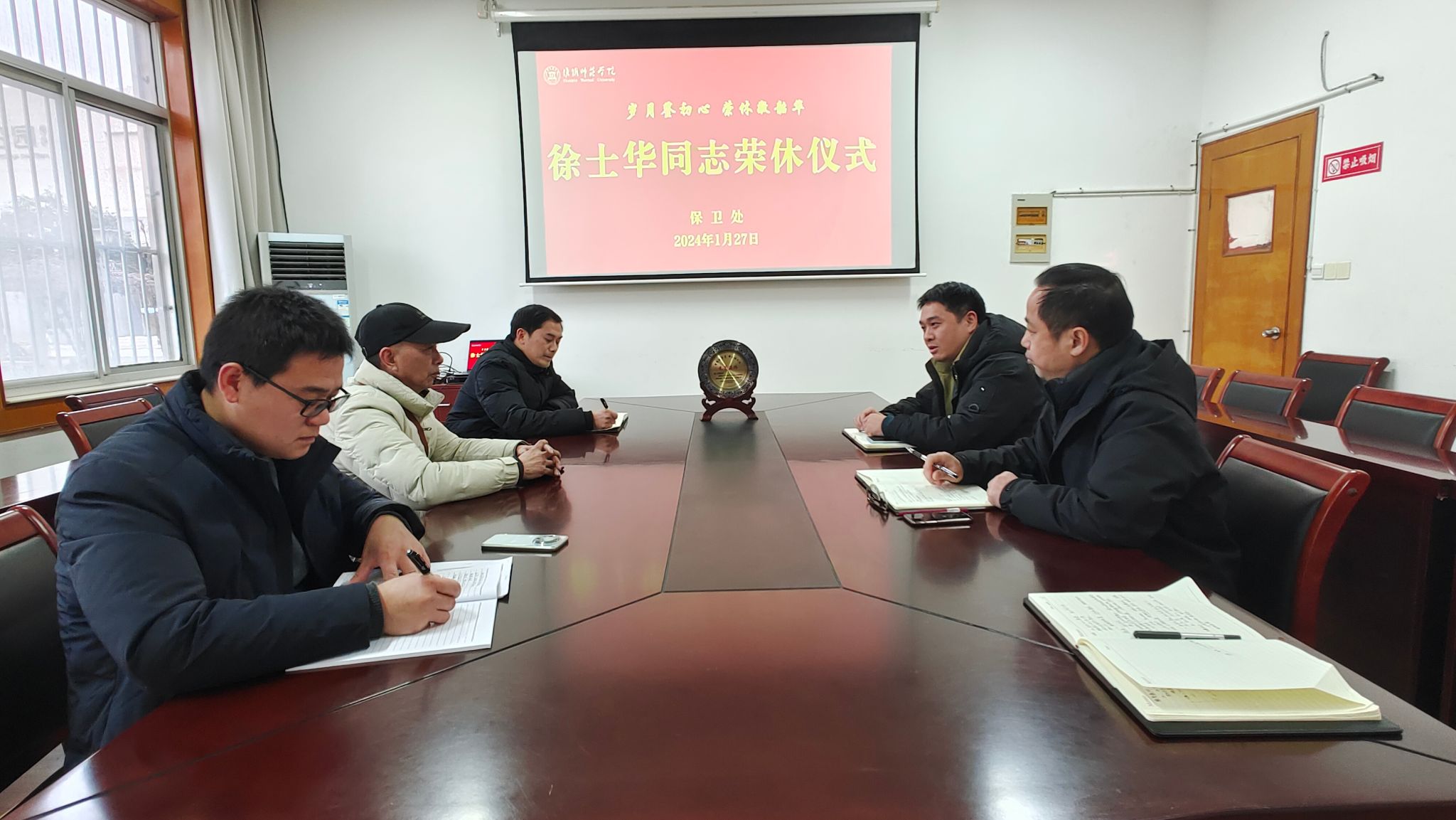岁月鉴初心,荣休敬韶华,暖暖欢送意,浓浓惜别情。1月27日下午,党委保卫部、保卫处为退休职工徐士华同志举办了荣休仪式,党委保卫部(处)长景鹏主持仪式,丁光明副部(处)长及相关科室负责人参加了会议。
