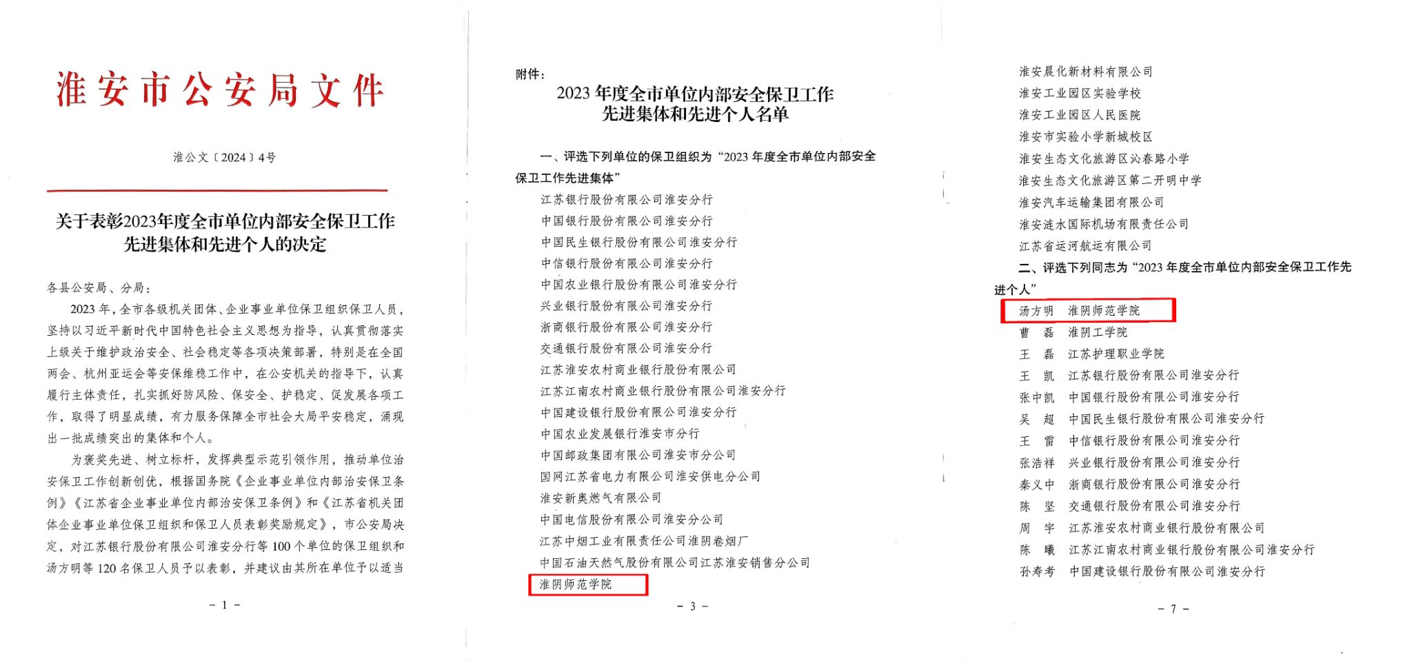 会上对全市单位内部安全保卫工作先进集体和个人进行了表彰,我校荣获2023年度全市“单位内部安全保卫工作先进集体”荣誉称号。