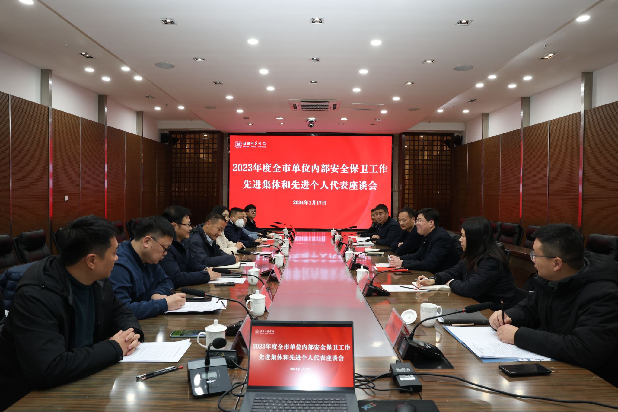 1月17日,2023年度淮安市单位内部安全保卫工作座谈会在淮阴师范学院图书馆第一会议室举行,淮安市内保支队支队长曹建兵、政委周润之,淮阴师范学院副校长闫超栋,以及江苏银行淮安分行、淮安市供电公司、中国石油淮安分公司、淮安市广播电视台、淮安市第一人民医院等十余家先进集体和先进个人代表参加座谈会。