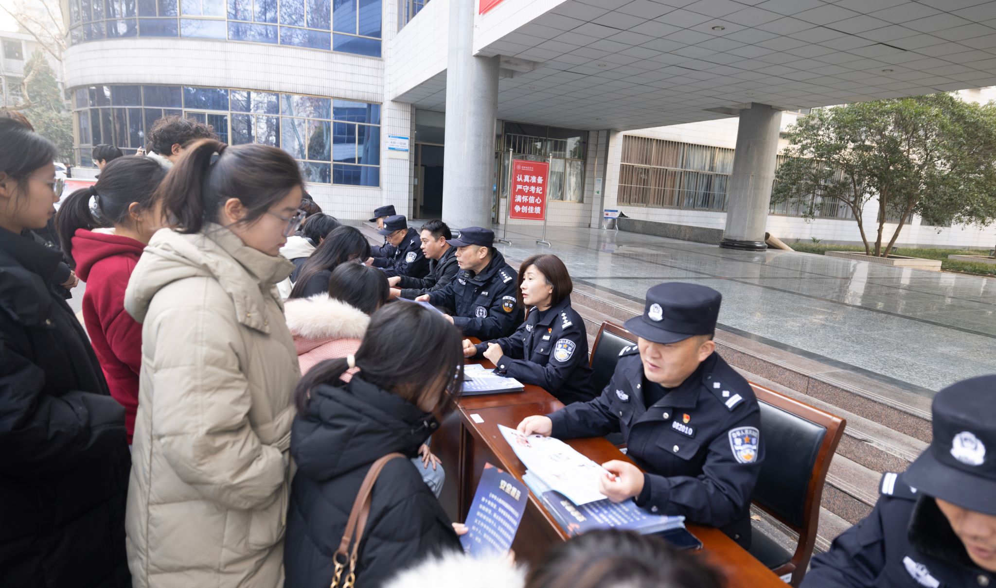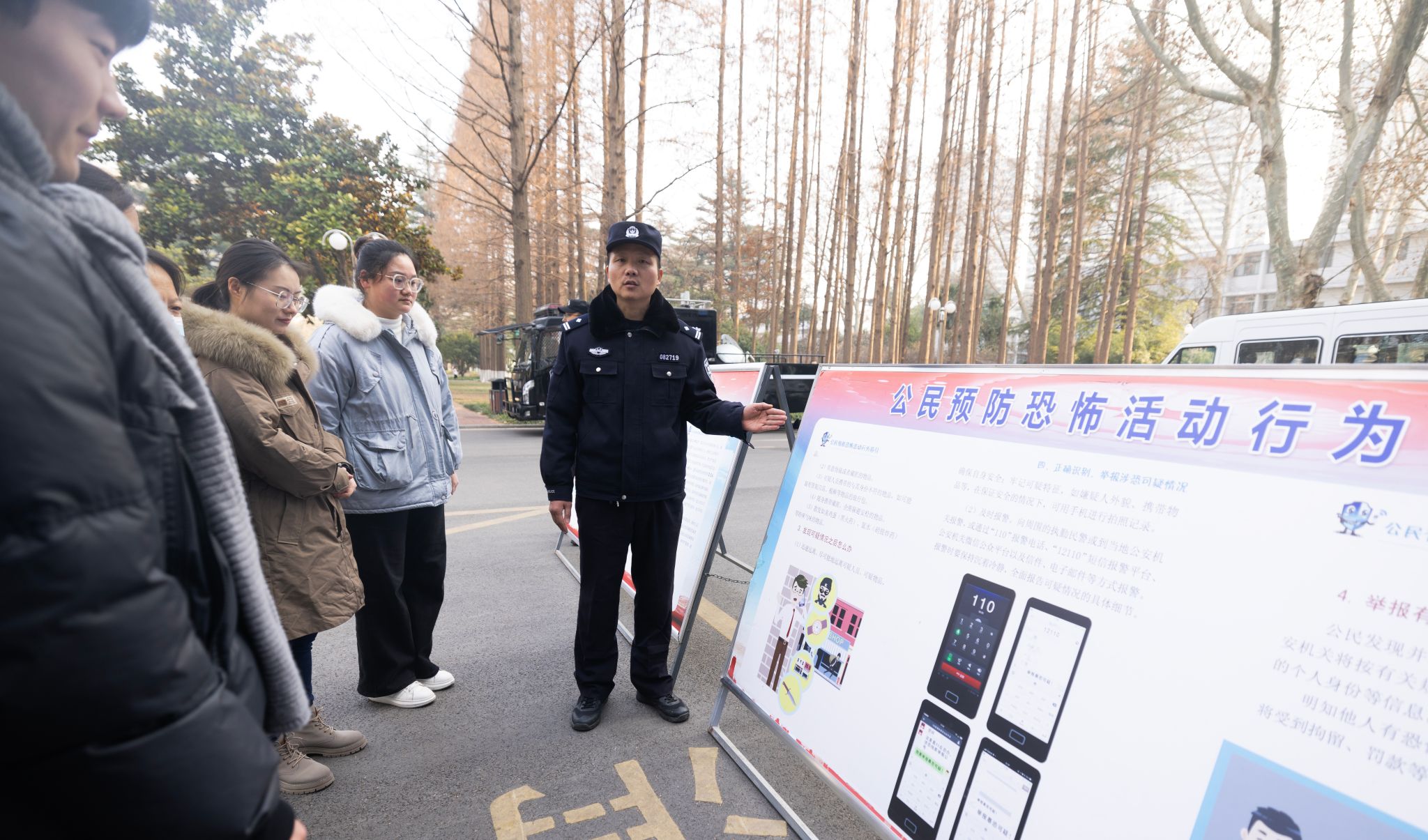 为深入贯彻落实习近平总书记关于反恐怖工作的重要指示精神,增强全民反恐防恐意识和能力,在《反恐怖主义法》颁布八周年之际,12月27日下午,保卫处联合淮安市公安局在交通路校区开展“加强反恐安全教育 筑牢高校反恐防线”专题宣传教育活动?;窗彩泄簿指本殖ふ挪?、反恐办副主任张士兵及巡特警支队、清江浦区分局等相关负责同志参加了此次宣传活动。