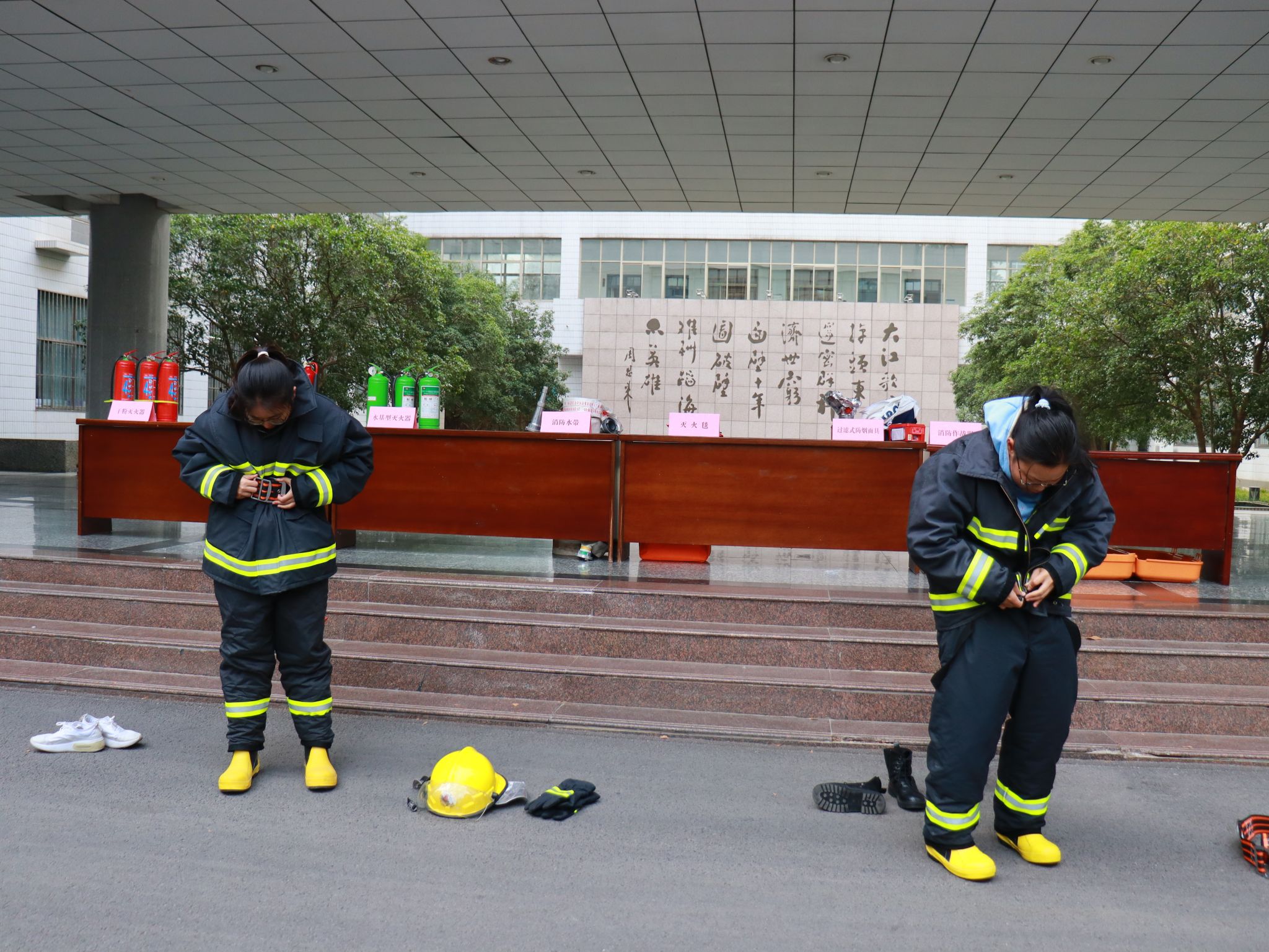 本次活动共分为消防安全知识问答、消防器材展示、消防业务技能演练三个环节。消防安全知识问答环节:通过抢答的形式宣讲了如何判断灭火器是否完好有效,以“提、拔、握、压”四字口诀巩固师生正确使用灭火器方法,掌握在火灾的初起阶段如何进行灭火及疏散逃生等消防安全知识。消防器材展示环节:集中展示了灭火器、灭火毯、过滤式防烟面具、消防作战服等系列消防设备,针对同学们对消防器材使用存在的疑惑,保卫处工作人员用浅显易懂的语言阐述了各类消防器材的使用方法及适用的场所。消防业务技能演练环节:师生根据所掌握的消防器材使用要领,开展了过滤式消防自救呼吸器、消防作战服快速穿戴,面对初起火灾时,沉着冷静快速利用灭火器进行灭火等消防业务技能演练,切实提升了师生应对突发火情时的消防应急处置能力。