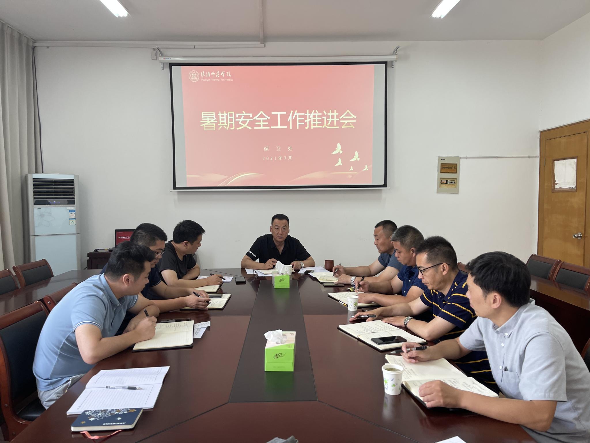 为贯彻习近平总书记关于安全生产、疫情防控、打击治理电信网络诈骗犯罪等工作的重要指示要求,落实《省教育厅关于开展2021年教育系统“安全生产月”活动的通知》的文件要求,进一步推进淮阴师范学院安全专项整治三年行动进程,杜绝暑假校园各类安全事故发生,保障广大师生生命安全。7月14日上午,保卫处全体管理干部在处会议室召开暑期安全管理工作推进会,对暑期安全工作进行再安排、再部署。