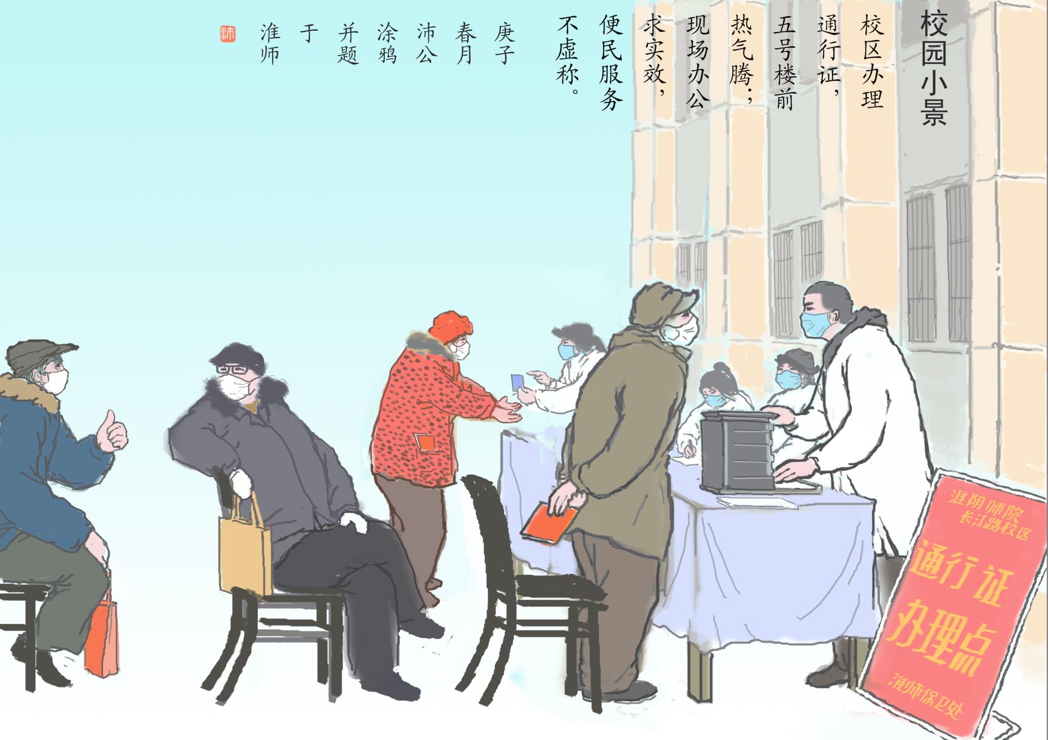 校区办理通行证,五号楼前热气腾;
