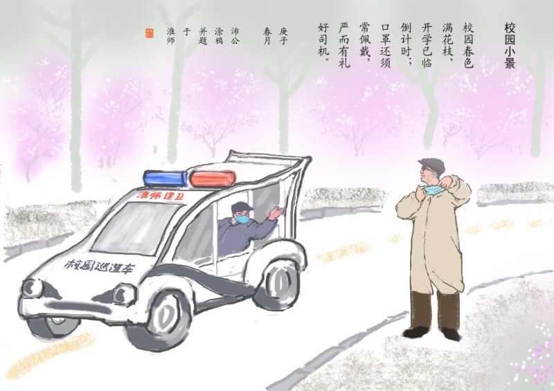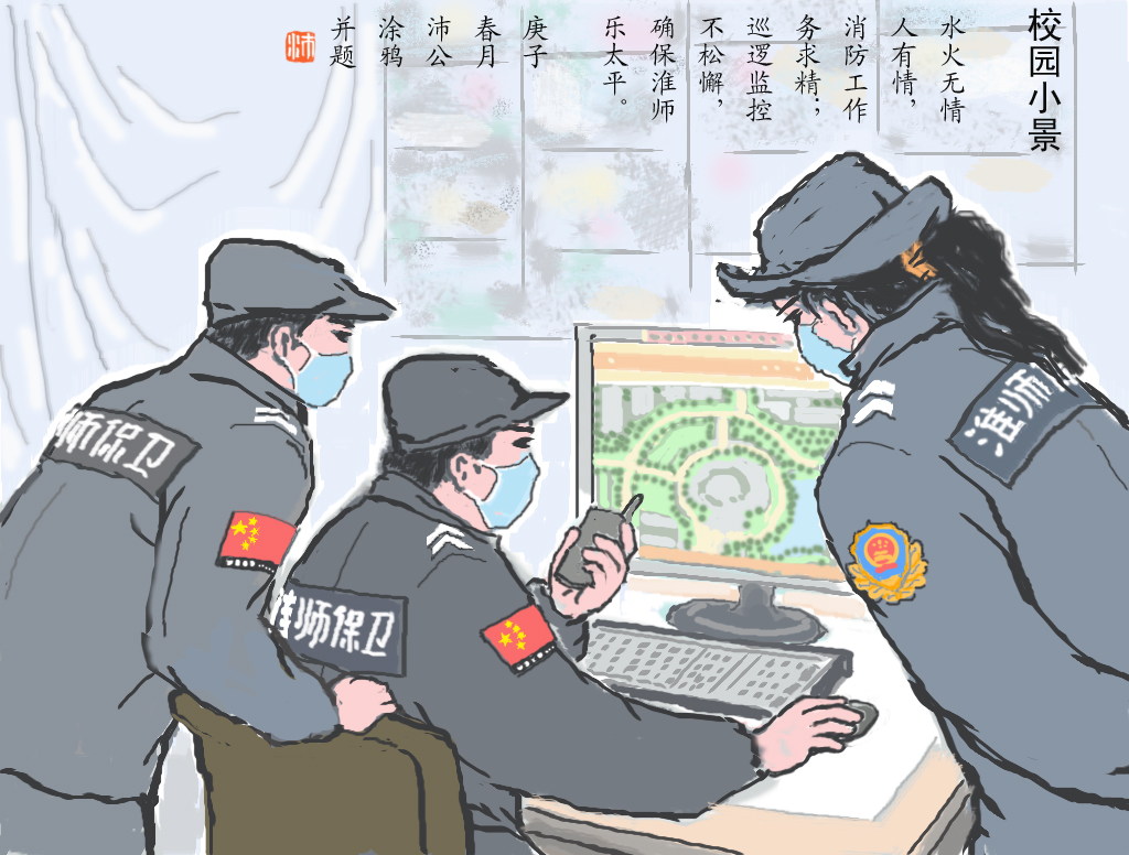 新冠肺炎疫情防控期间,淮阴师范学院保卫处坚决落实上级相关要求和学校关于新冠肺炎防控工作安排,将师生员工生命安全和身体健康放在第一位,采取切实有效措施,扎实做好校门管理、进出车辆管理和人员管理。近日,淮阴师范学院退休教师王开沛同志将淮师安保人的抗疫点滴,用笔墨记录描绘下来,并赠送保卫处,感谢安保人员守护师生健康、维护学校大局。