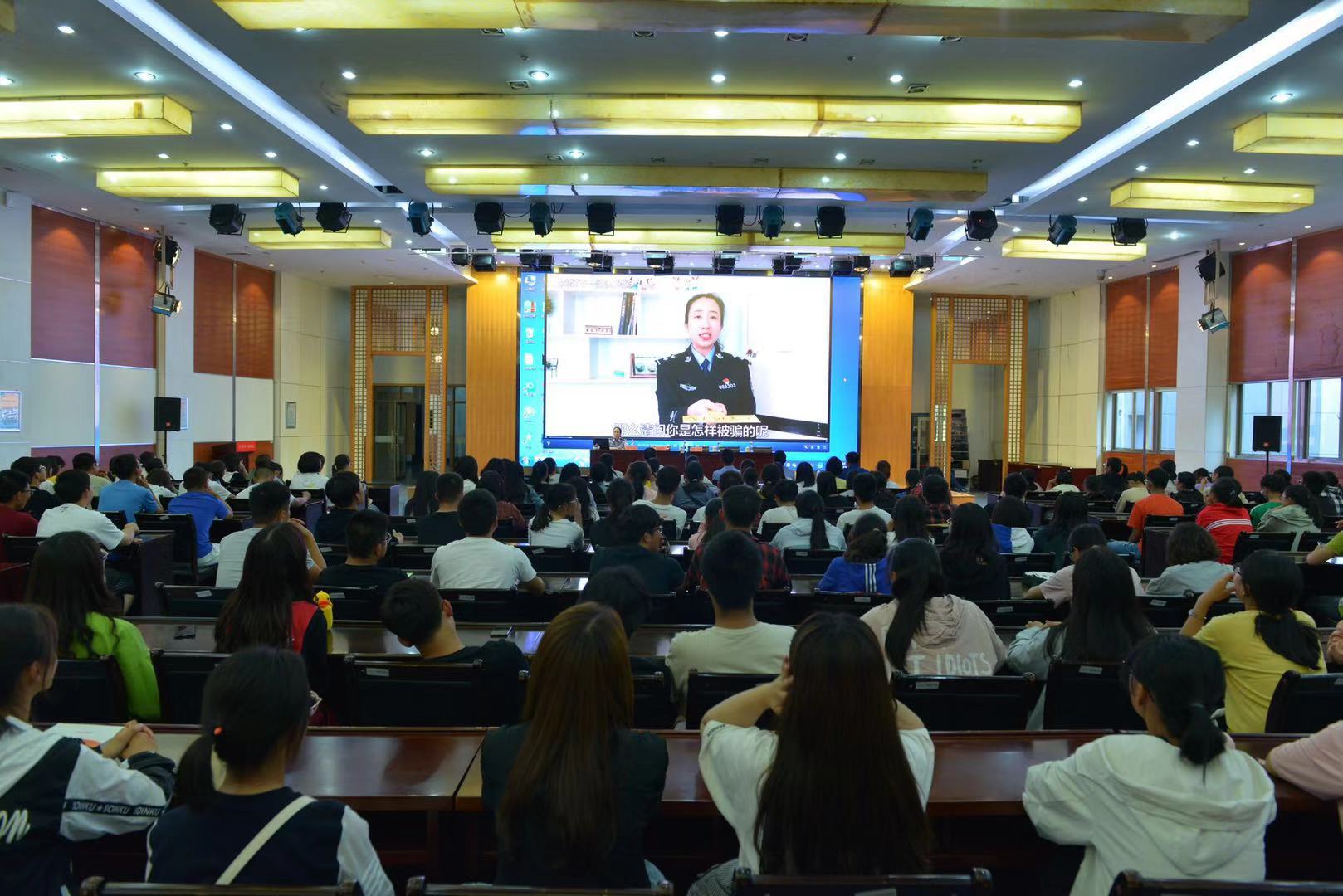 最后杨晓怀结合自身主办的大案、要案,通过播放短视频、真实案例解读、普及法律知识,深入浅出、通俗易懂地向同学们揭露网络赌博的危害性,教育引导同学们提高对网络赌博违法犯罪活动的识别能力和防范意识。