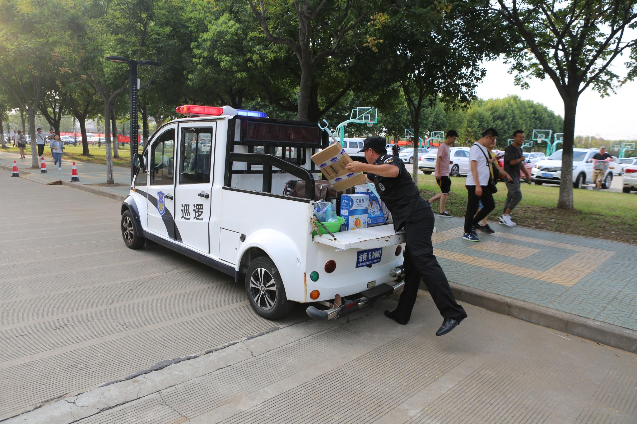迎新期间,保卫人员除指挥交通、加强巡查外,还充当了“暖心大叔”的角色,有求必应详细解答新生及家长的问题,出动警用巡逻车数十次,为需要帮助的新生运送行李。